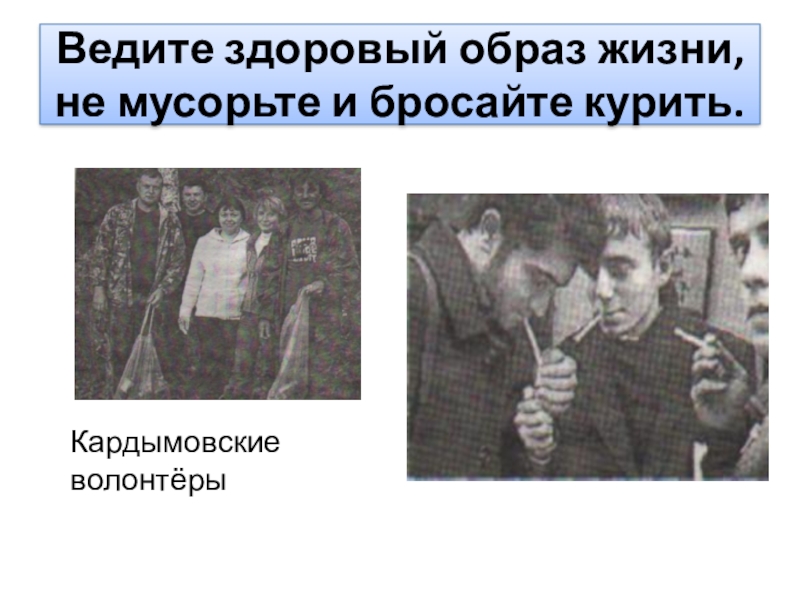Ведите здоровый образ жизни, не мусорьте и бросайте курить.Кардымовские волонтёры