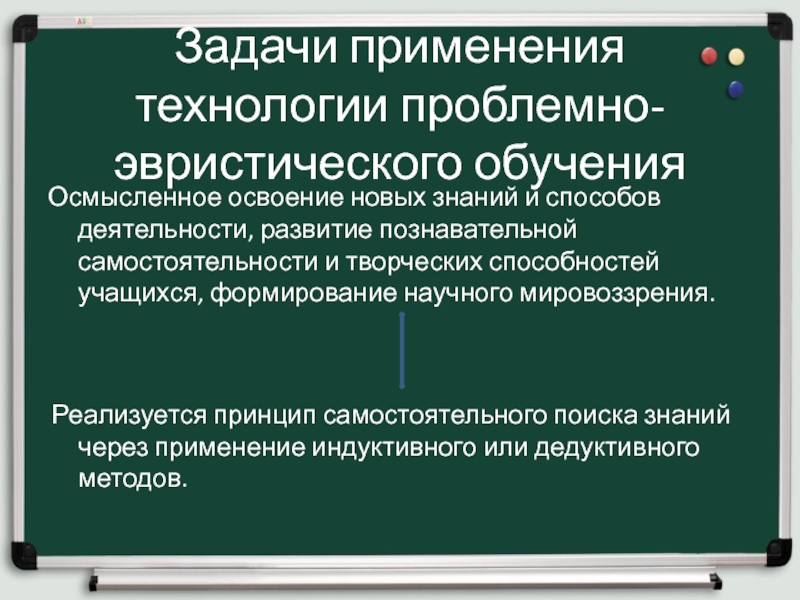 Реализуется принцип самостоятельного поиска знаний через применение индуктивного или дедуктивного методов.
