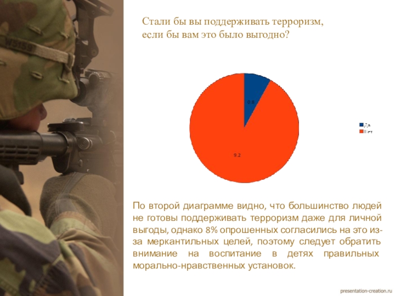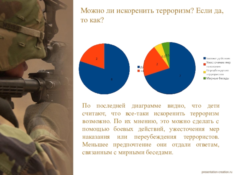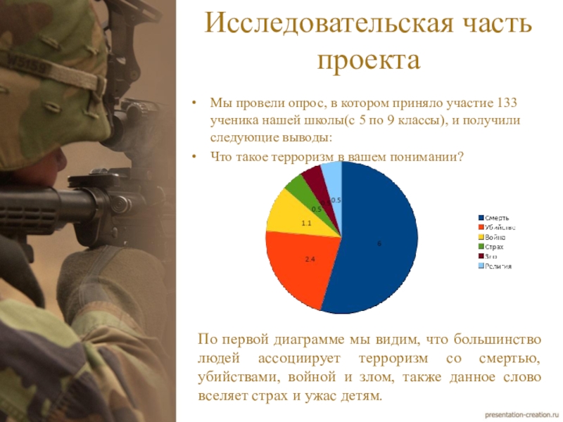 По первой диаграмме мы видим, что большинство людей ассоциирует терроризм со смертью, убийствами, войной и злом, также данное слово вселяет страх и ужас детям.