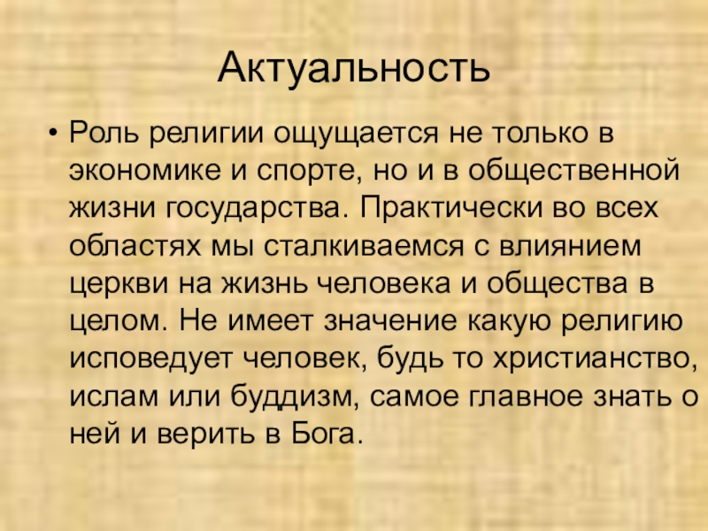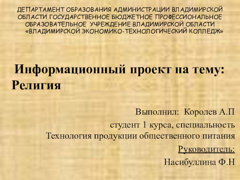 Информационный проект на тему:Религия