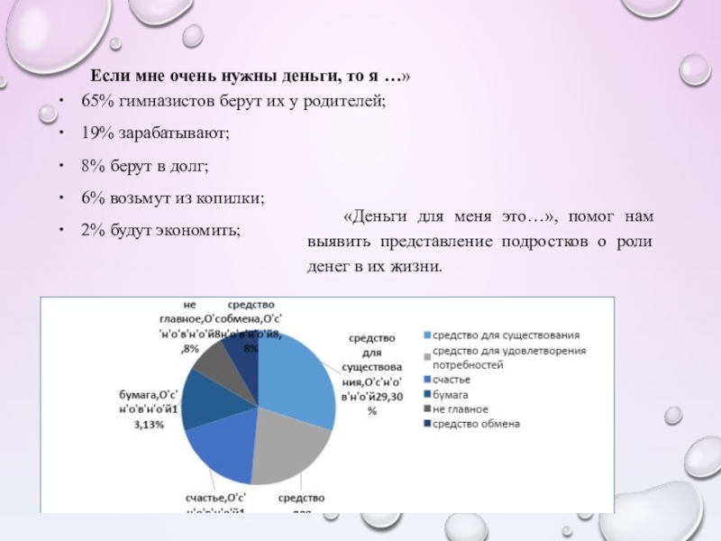 «Деньги для меня это…», помог нам выявить представление подростков о роли денег в их жизни.
