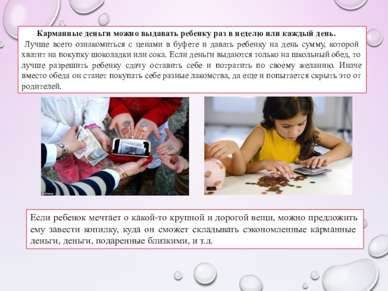 Если ребенок мечтает о какой-то крупной и дорогой вещи, можно предложить ему завести копилку, куда он сможет складывать сэкономленные карманные деньги, деньги, подаренные близкими, и т.д.