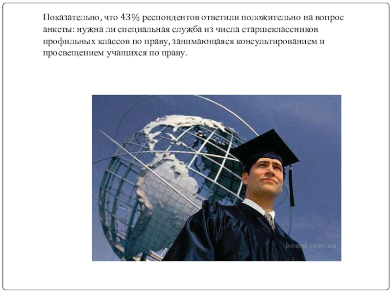 Слайд 9В рамках социологического исследования, с целью определения уровня правового сознания учащихся