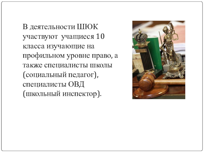 право, а также специалисты школы (социальный педагог), специалисты ОВД (школьный инспектор).