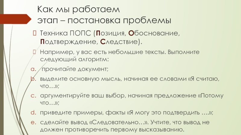 Техника ПОПС (Позиция, Обоснование, Подтверждение,