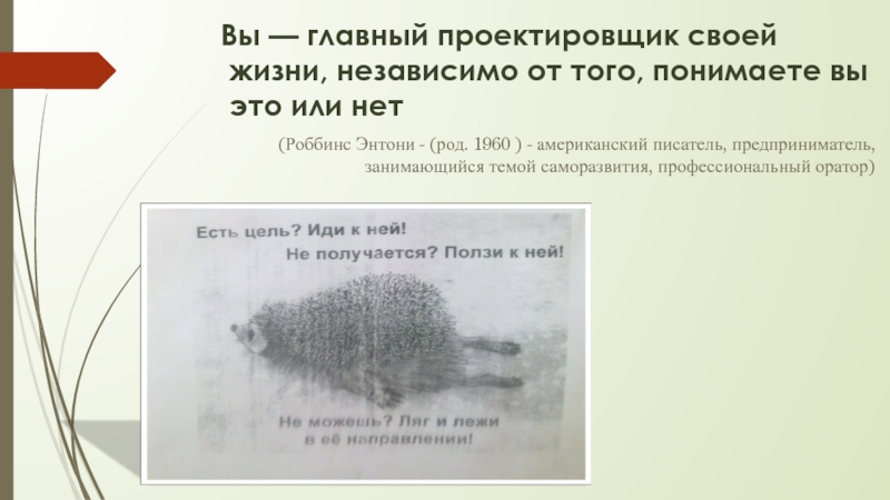 Слайд 15 Вы — главный проектировщик своей жизни, независимо от того, понимаете
