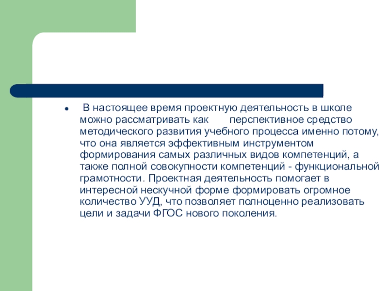 Слайд 14 В настоящее время проектную деятельность в школе можно рассматривать как