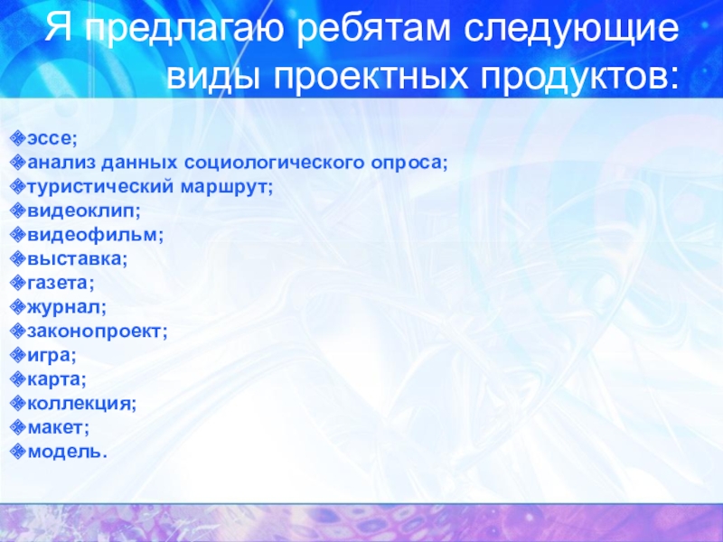 Презентация продукта деятельности: