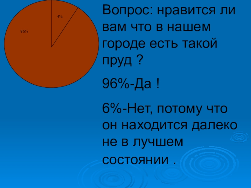 Слайд 13Вопрос: нравится ли вам что в нашем городе есть такой пруд