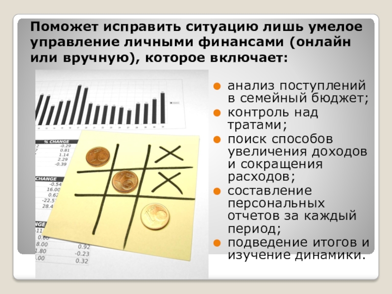 Поможет исправить ситуацию лишь умелое управление личными финансами (онлайн или вручную), которое включает: