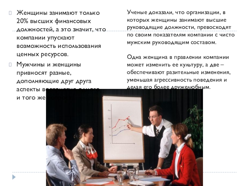 Слайд 9Женщины занимают только 20% высших финансовых должностей, а это значит, что