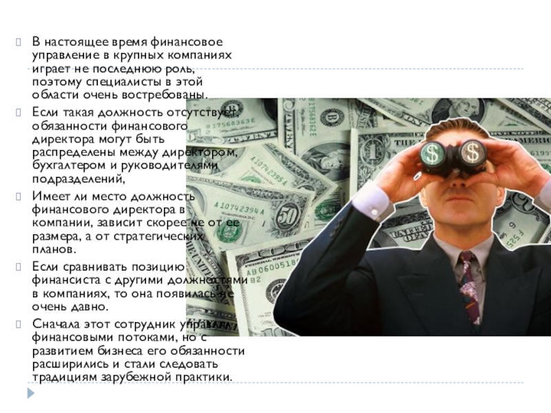 Слайд 7В настоящее время финансовое управление в крупных компаниях играет не последнюю