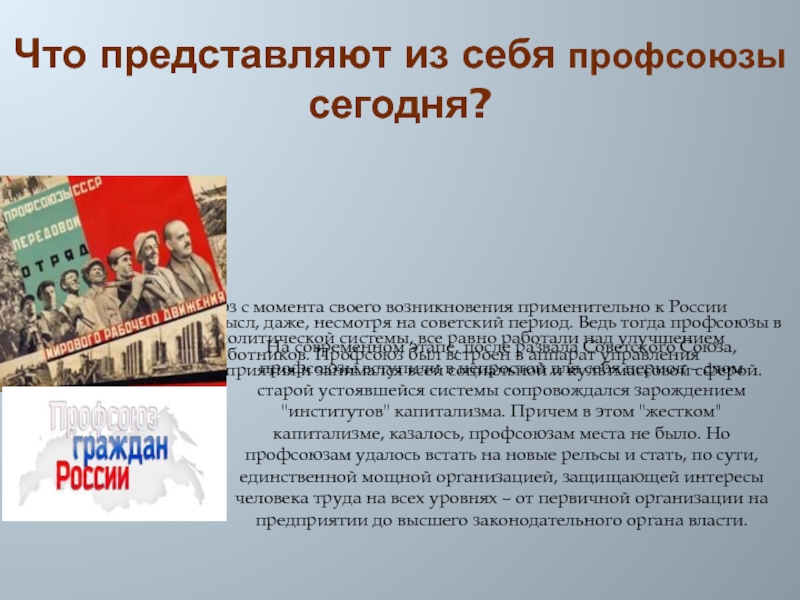 Слайд 13Что представляют из себя профсоюзы сегодня?