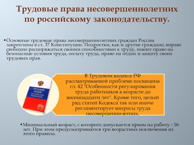 Слайд 15Трудовые права несовершеннолетних по российскому законодательству.