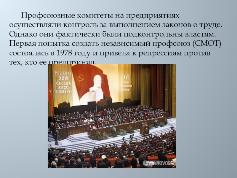 Слайд 10 Профсоюзные комитеты на предприятиях осуществляли контроль за выполнением