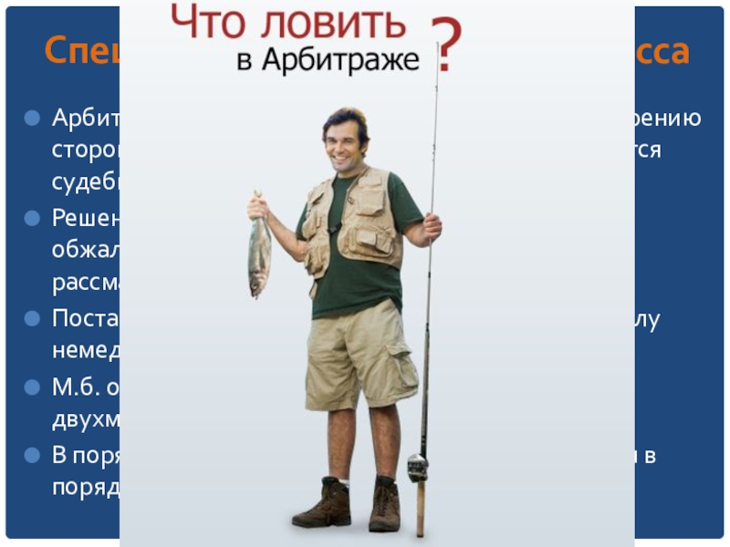 Слайд 28 К числу особенностей арбитражного процесса следует отнести возможность альтернативы представления суду
