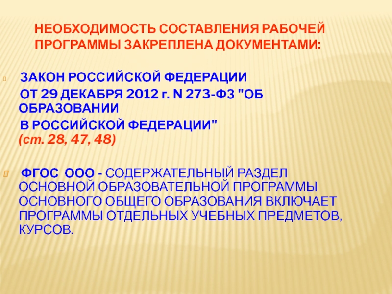 Слайд 2НЕОБХОДИМОСТЬ СОСТАВЛЕНИЯ РАБОЧЕЙ ПРОГРАММЫ ЗАКРЕПЛЕНА ДОКУМЕНТАМИ: