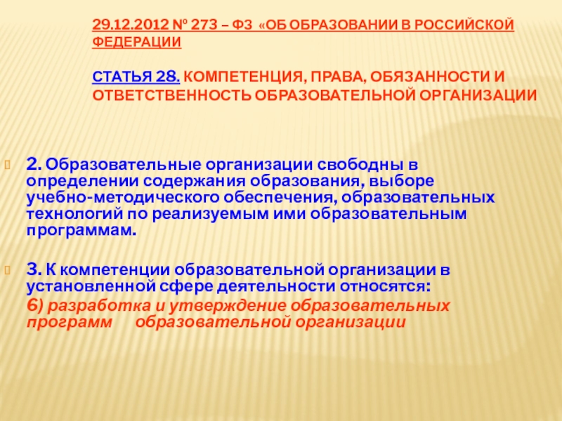 Слайд 329.12.2012 № 273 – ФЗ «Об образовании в Российской Федерации