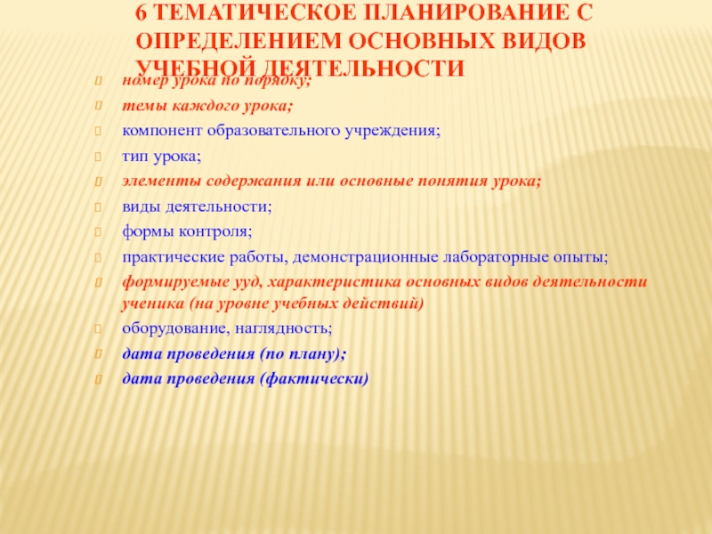 Слайд 236 Тематическое планирование с определением основных видов учебной деятельности