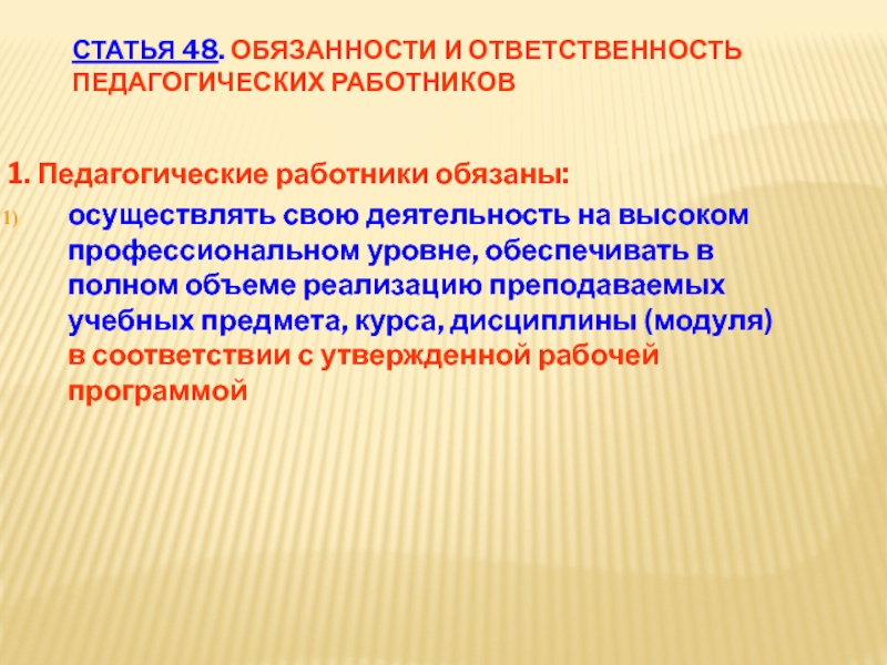 Слайд 5Статья 48. Обязанности и ответственность педагогических работников