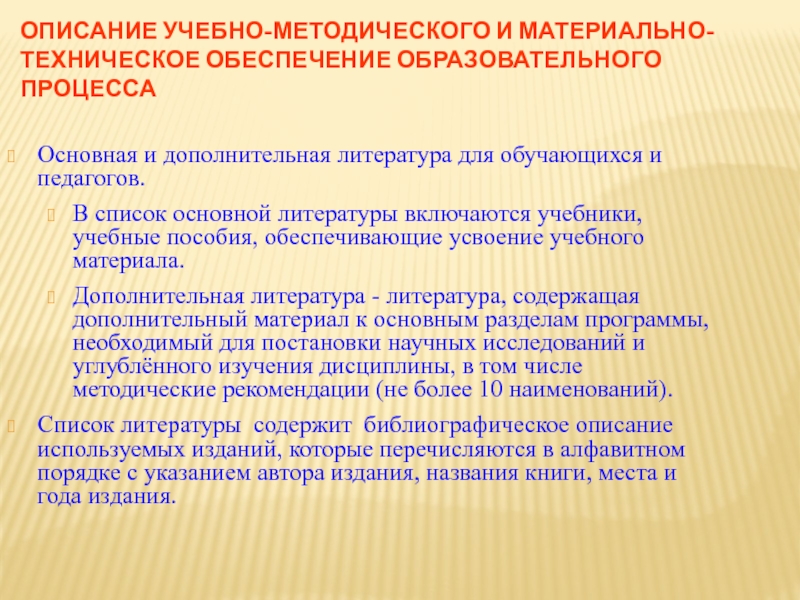 Слайд 24Описание учебно-методического и материально-техническое обеспечение образовательного процесса