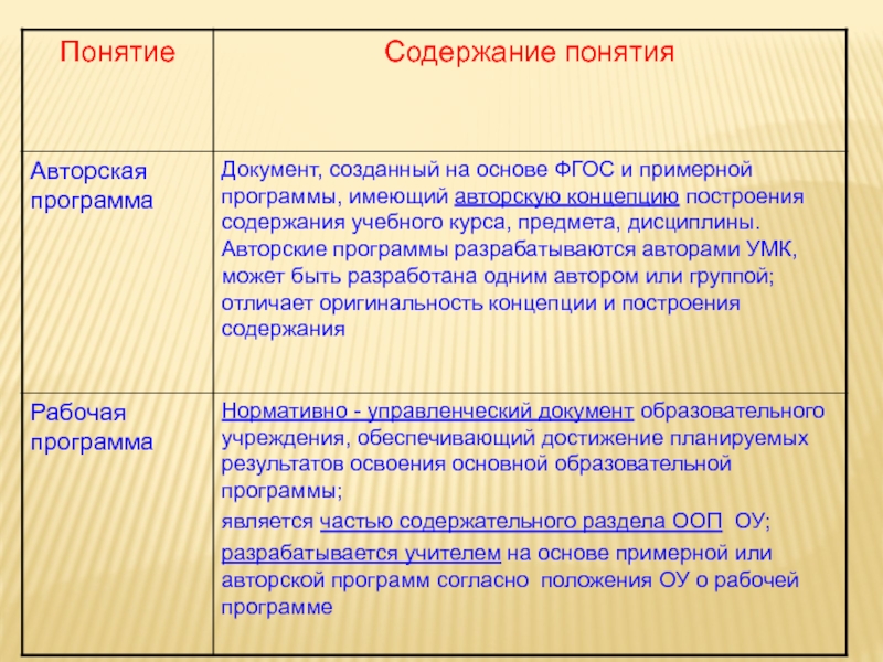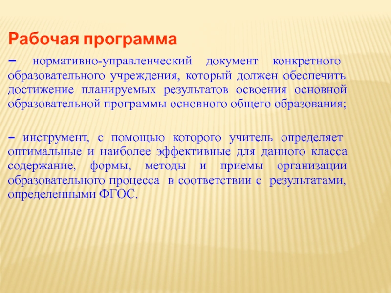 – инструмент, с помощью которого учитель определяет оптимальные и наиболее эффективные для данного класса содержание, формы, методы и приемы организации образовательного процесса в соответствии с результатами, определенными ФГОС.