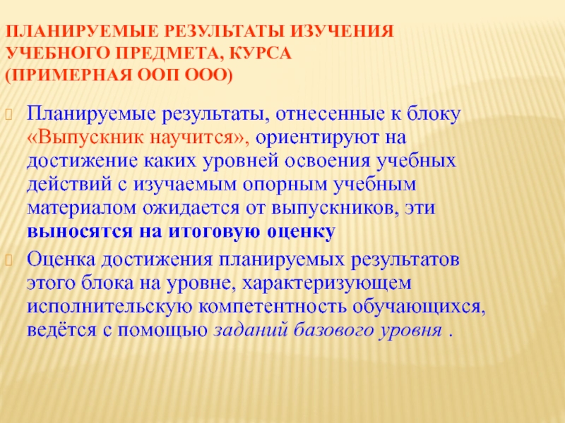 блоку «Выпускник научится», ориентируют на достижение каких уровней освоения учебных действий с изучаемым опорным учебным материалом ожидается от выпускников, эти выносятся на итоговую оценку