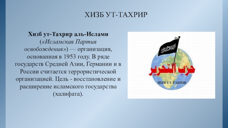 Слайд 13ХИЗБ УТ-ТАХРИР