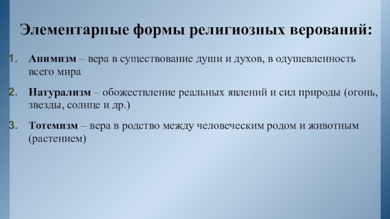 2. Религия – верование в связь человека с Богом или верование в существование духов.