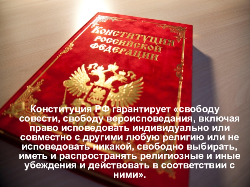 Конституция РФ гарантирует «свободу совести, свободу вероисповедания, включая право исповедовать индивидуально
