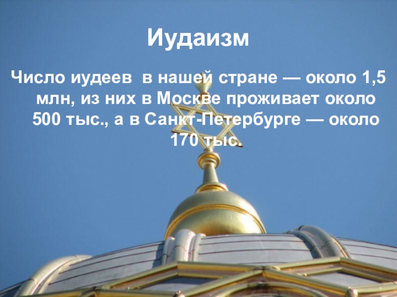 Число иудеев в нашей стране — около 1,5 млн, из них в