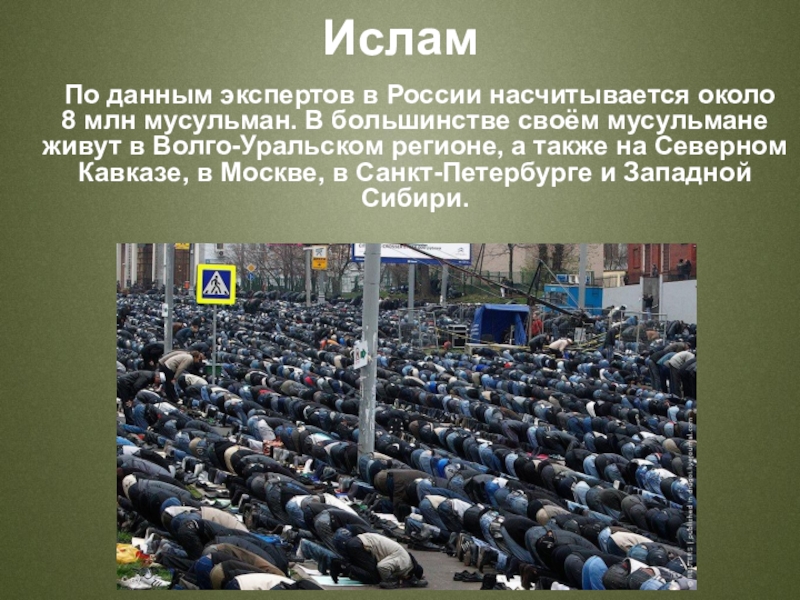 своём мусульмане живут в Волго-Уральском регионе, а также на Северном Кавказе, в Москве, в Санкт-Петербурге и Западной Сибири.