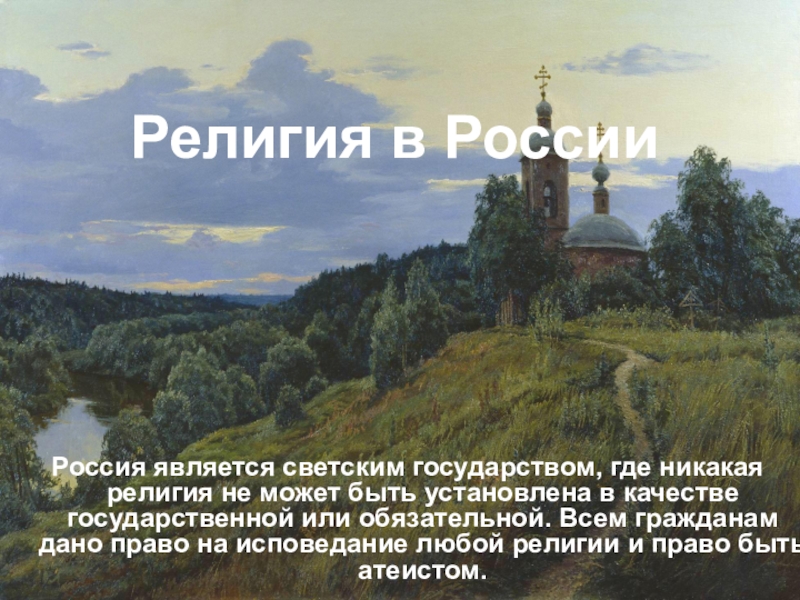 быть установлена в качестве государственной или обязательной. Всем гражданам дано право на исповедание любой религии и право быть атеистом.