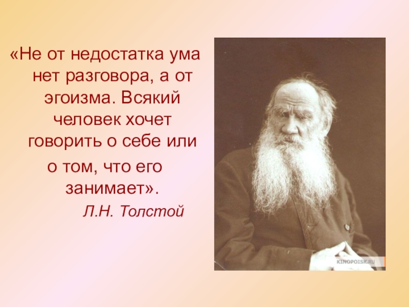Слайд 3«Не от недостатка ума нет разговора, а от эгоизма. Всякий человек