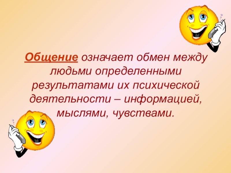 Общение означает обмен между людьми определенными результатами их психической деятельности – информацией, мыслями, чувствами.