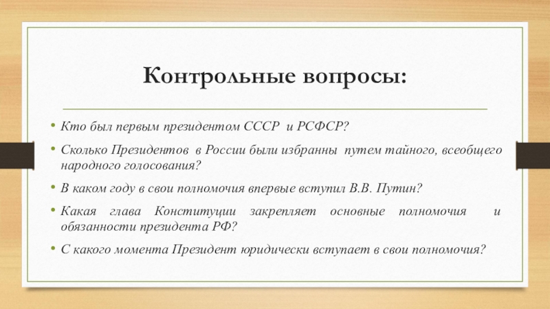 15 марта 1990 года Съездом народных депутатов СССР с внесением соответствующих поправок в Конституцию РСФСР (1978 г.). До этого высшим должностным лицом в СССР был Генеральный секретарь ЦК КПСС.