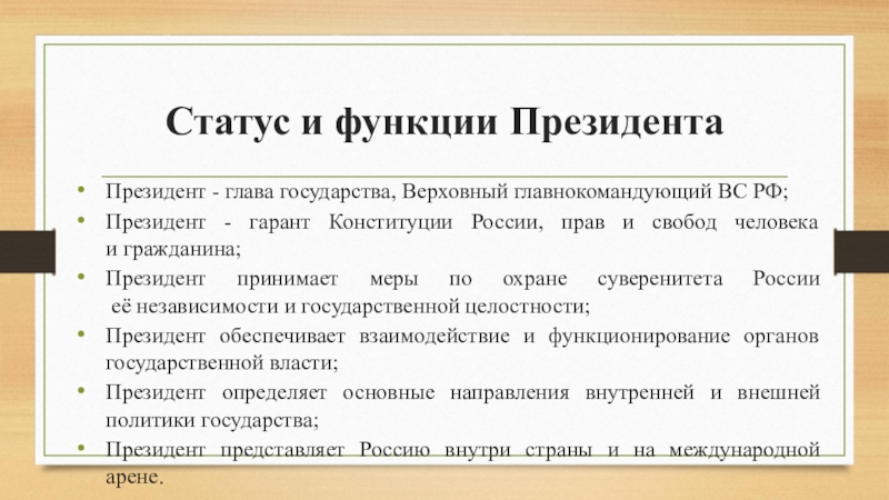 Президент - глава государства, Верховный главнокомандующий ВС РФ;
