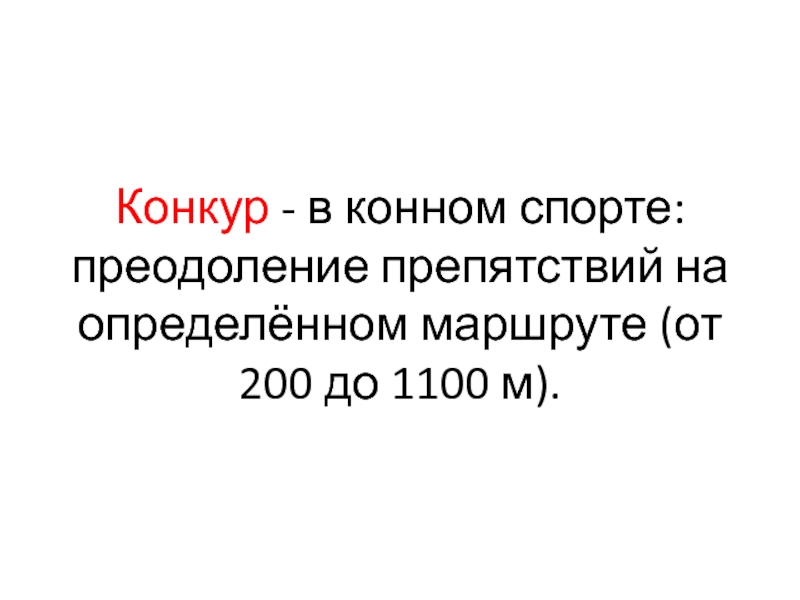 Слайд 7Конкур - в конном спорте: преодоление препятствий на определённом маршруте (от