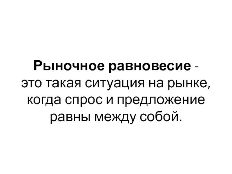 Рыночное равновесие - это такая ситуация на рынке, когда спрос и предложение равны между собой.