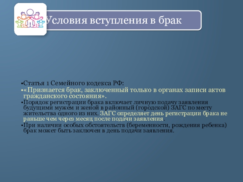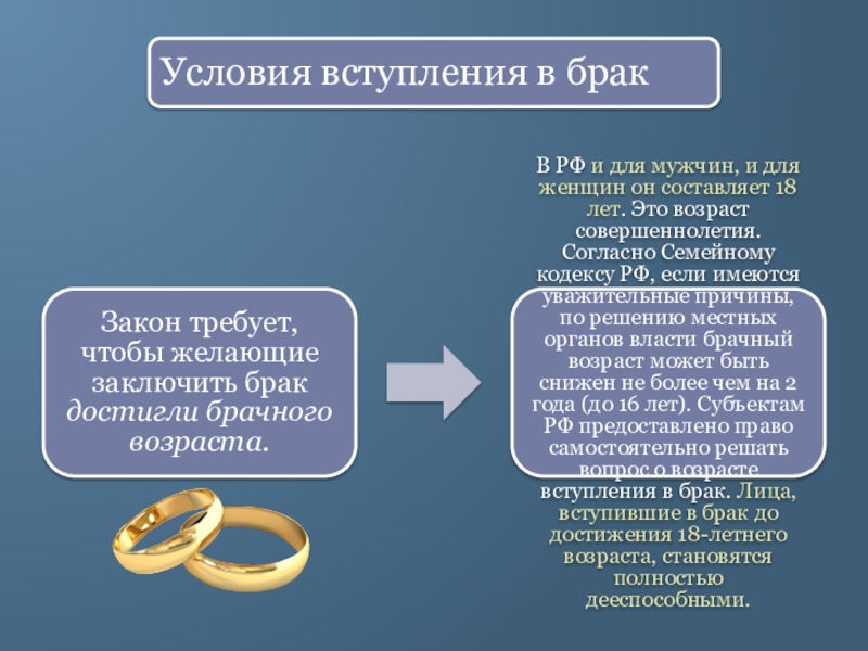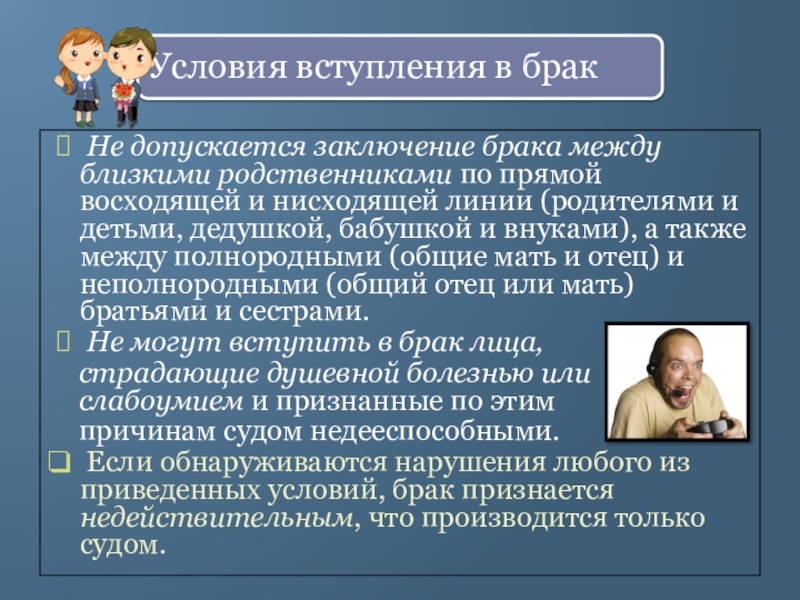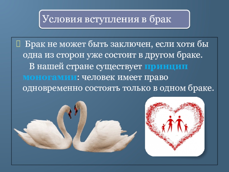 Слайд 13 Брак не может быть заключен, если хотя бы одна из