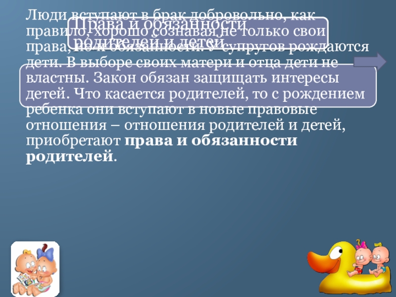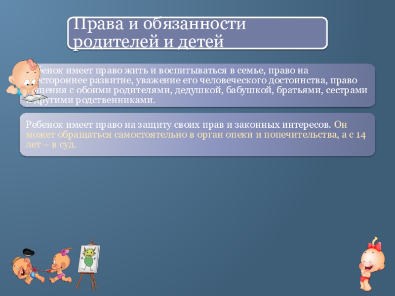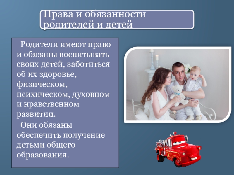 Слайд 26Родители имеют право и обязаны воспитывать своих детей, заботиться об их