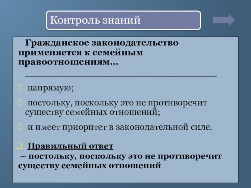 Слайд 37Гражданское законодательство применяется к семейным правоотношениям…
