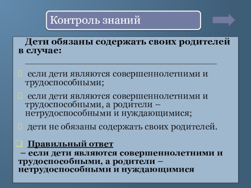 Слайд 39Дети обязаны содержать своих родителей в случае: