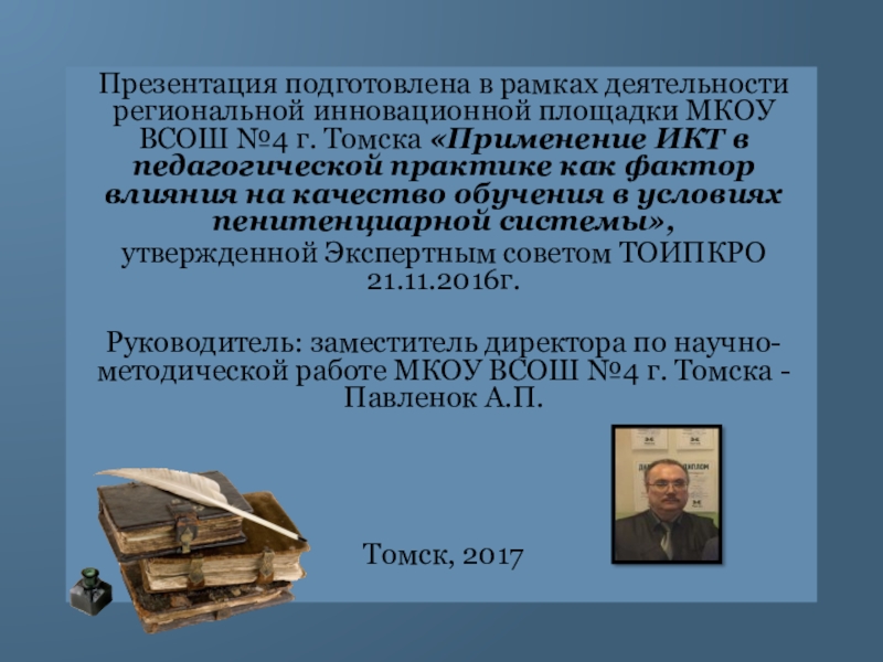 г. Томска «Применение ИКТ в педагогической практике как фактор влияния на качество обучения в условиях пенитенциарной системы»,