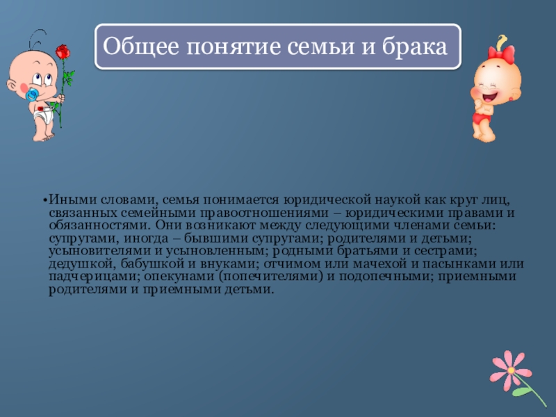 Слайд 7В юридическом смысле семья –это союз лиц, соединенных юридическими правами и