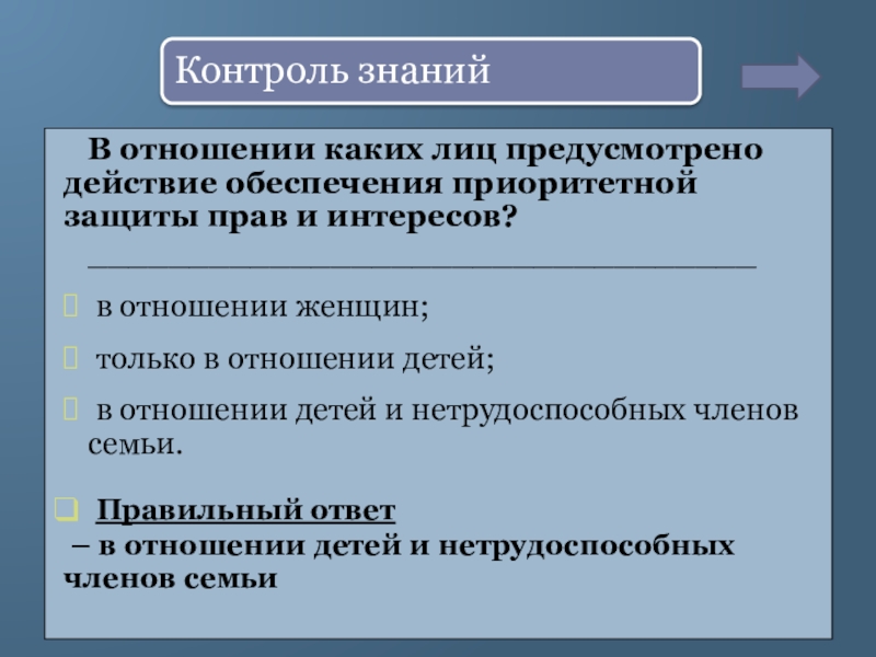 Слайд 40В отношении каких лиц предусмотрено действие обеспечения приоритетной защиты прав и