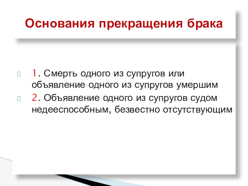 Основания прекращения брака
