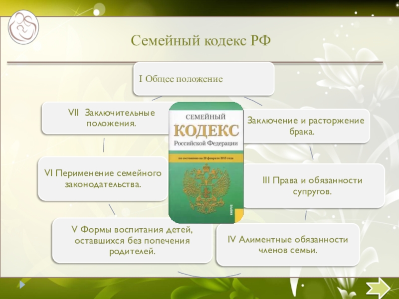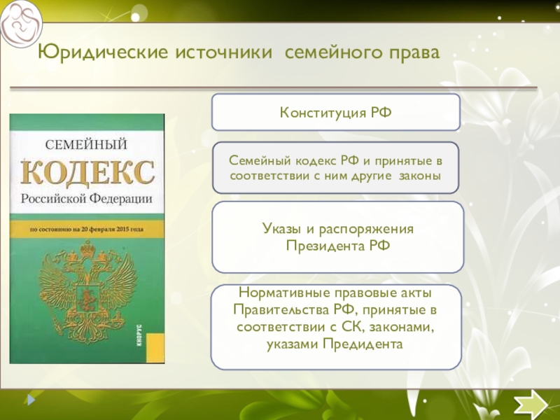 Юридические источники семейного праваСемейный кодекс РФ и принятые в соответствии с ним другие законы