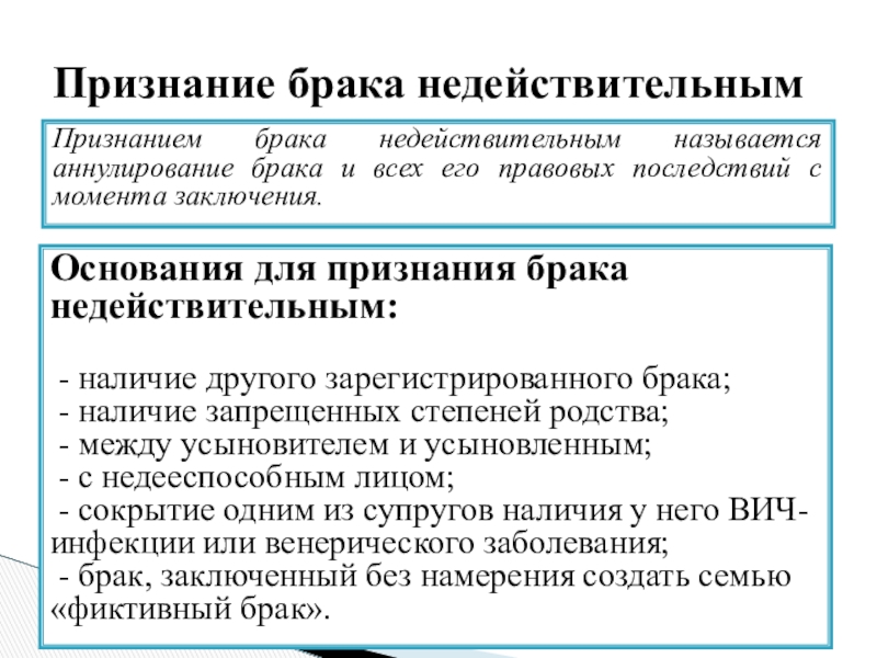 - брак, заключенный без намерения создать семью «фиктивный брак».