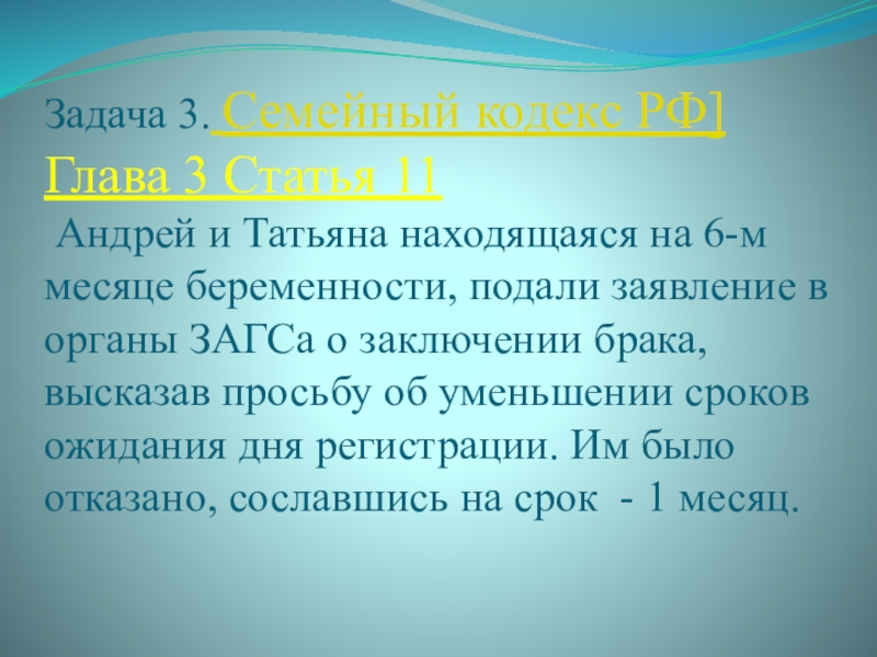 Слайд 17Задача 3. Семейный кодекс РФ] Глава 3 Статья 11 Андрей и